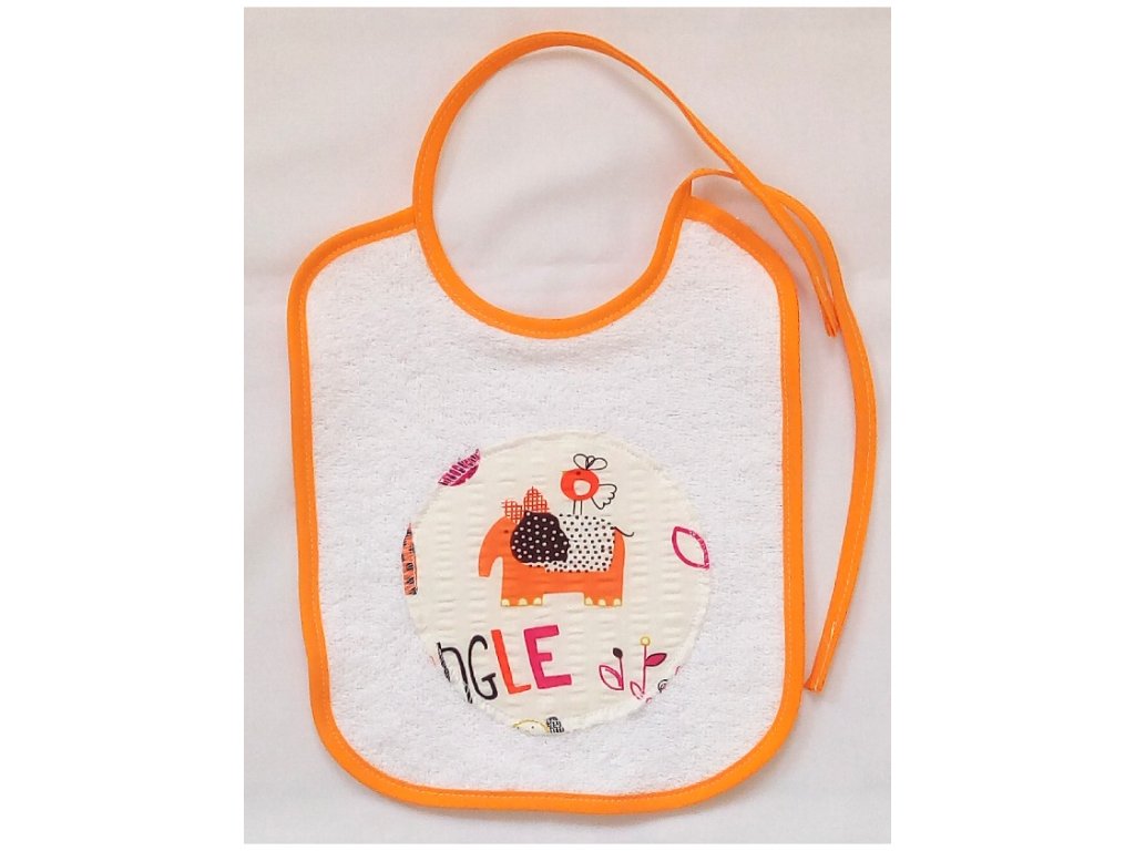 Froté bryndák na zavazování pro miminka a malé děti do 3 let, vyrobený v ČR. Měkký, savý a bezpečný, chrání oblečení při krmení. Lemování v oranžové barvě.