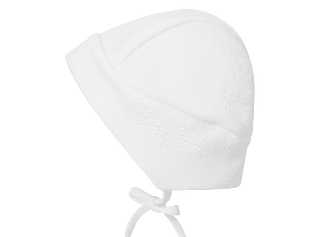 Tato čepička je vyrobená ze 100% bavlny, takže je měkká, prodyšná a nedráždí jemnou pokožku. Díky zavazování pod bradou zůstane vždy na místě a nesklouzne ani při pohybu.