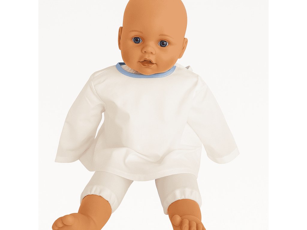 🍼 Kojenecká košilka na zavazování plátěná – modré lemování