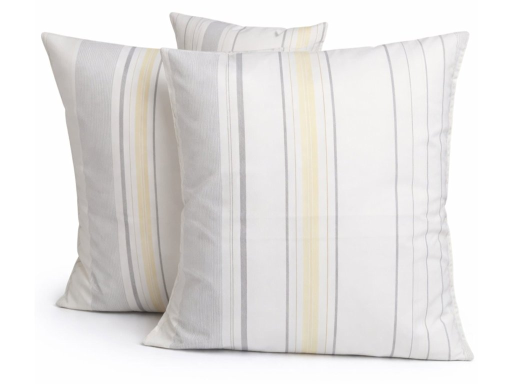 Tento šedo-bílý povlak na polštář s jemnými proužky působí čistě, svěže a elegantně. Díky svému decentnímu vzoru a jemnému lesku se krásně hodí do moderních i klasických interiérů.