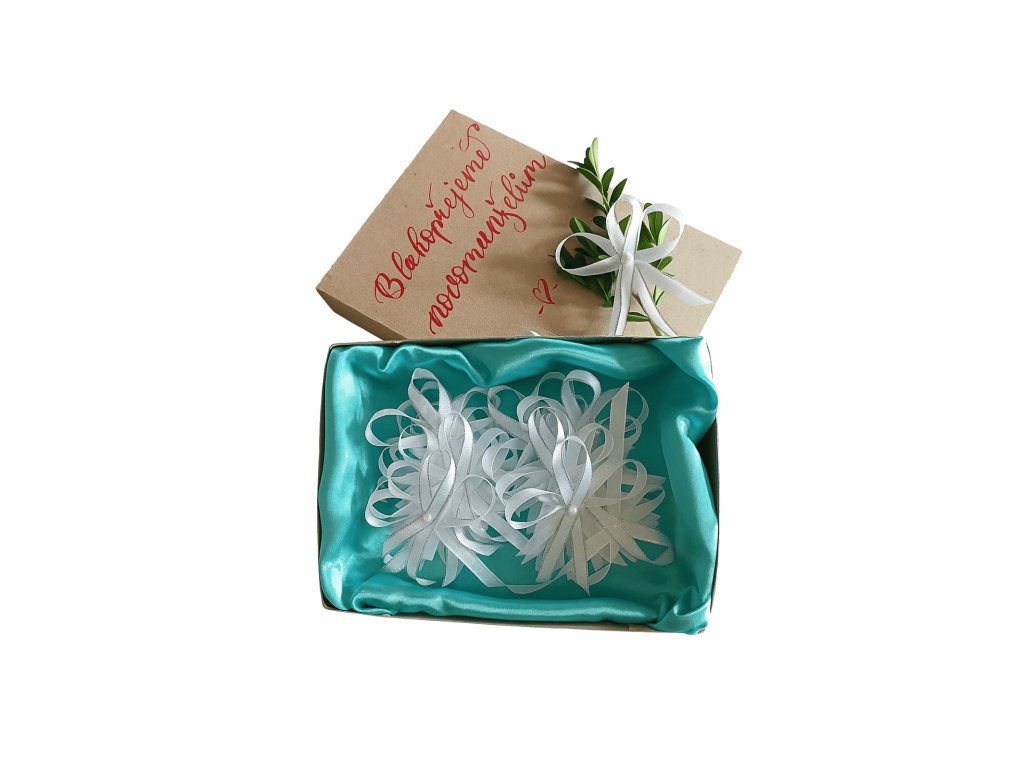 Ano 🤍 20 ks vývazků dodáváme v ručně vyráběné krabičce s přáním pro novomanžele.