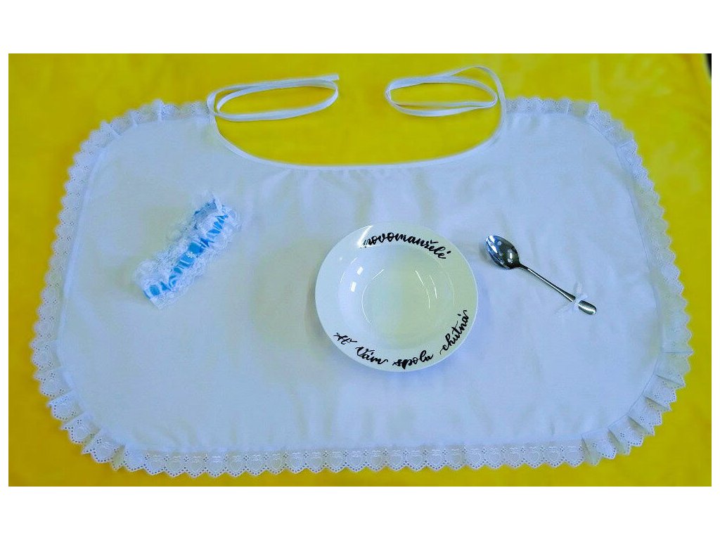 Pro dokonalý svatební rituál doporučujeme zkombinovat svatební talíř se svatební lžící na polévku a svatebním bryndákem 55 × 90 cm.